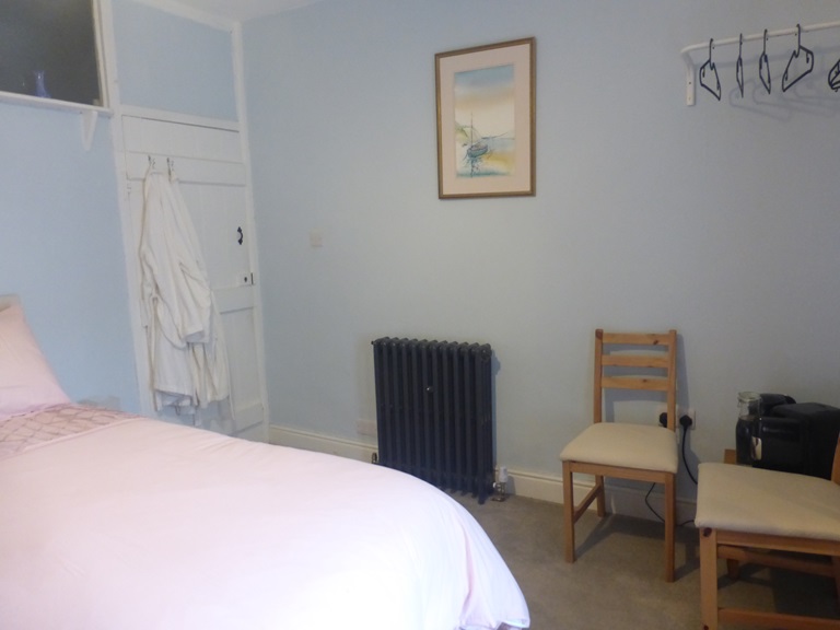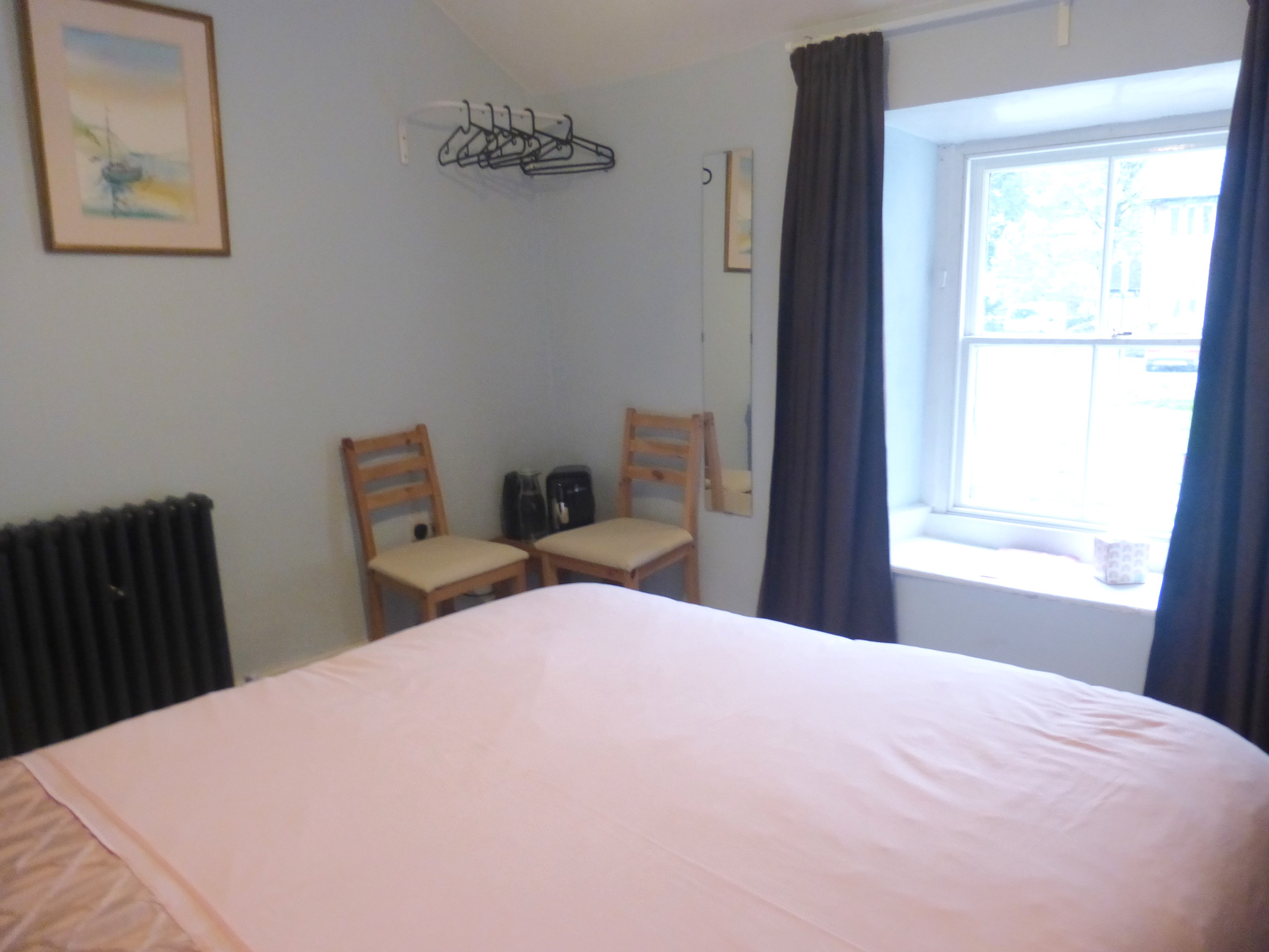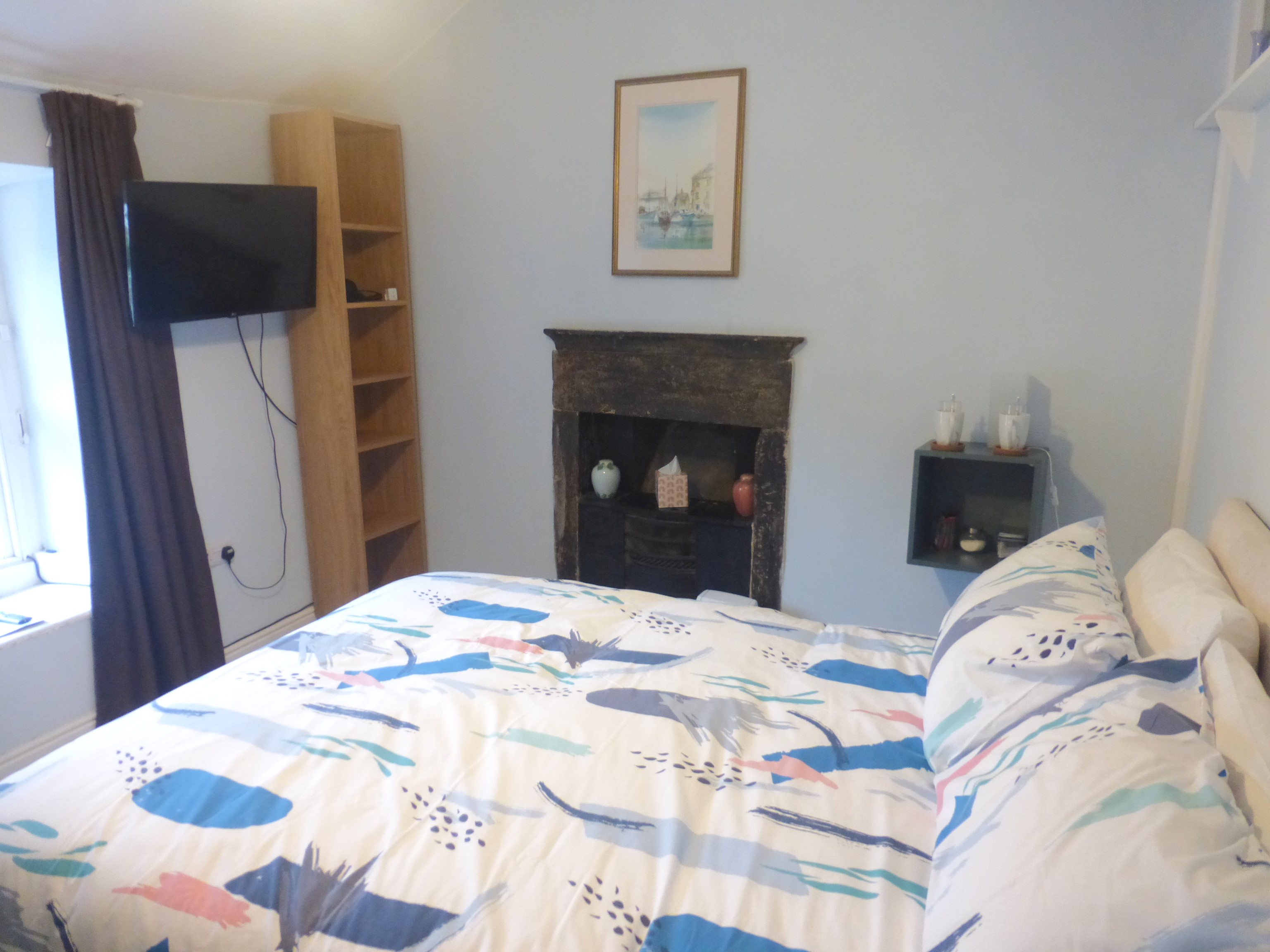 This bedroom has a double bed, hanging rail, shelf unit and a TV. Tea and cofee making facilites are provided as well as a hairdryer.